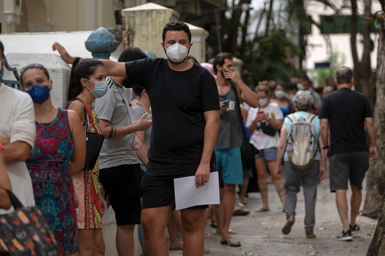 People wait in line to be tested for Covid-19 in Rio de Janiero, Brazil, on Jan 5, 2022.