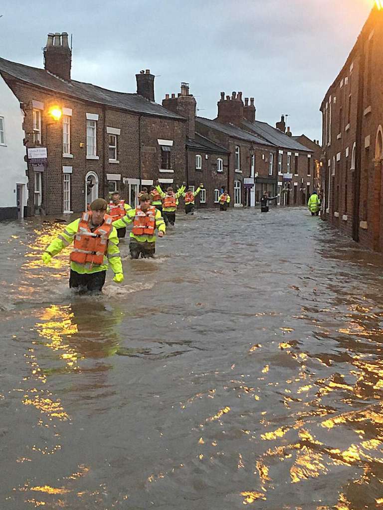 A photo made available by the British Ministry of Defence (MoD) on Dec 27, 2015 of soldiers of the Blenheim Company (2 Lancs) in Ribchester assisting the Emergency Services in conducting warn, inform and evacuation of the local population, on Dec 26, 2015.