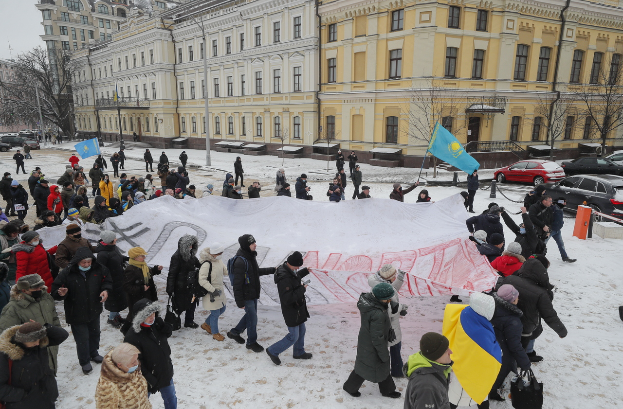 Protesters at a "Say No to Putin" rally in downtown Kiev on Jan 9, 2022.