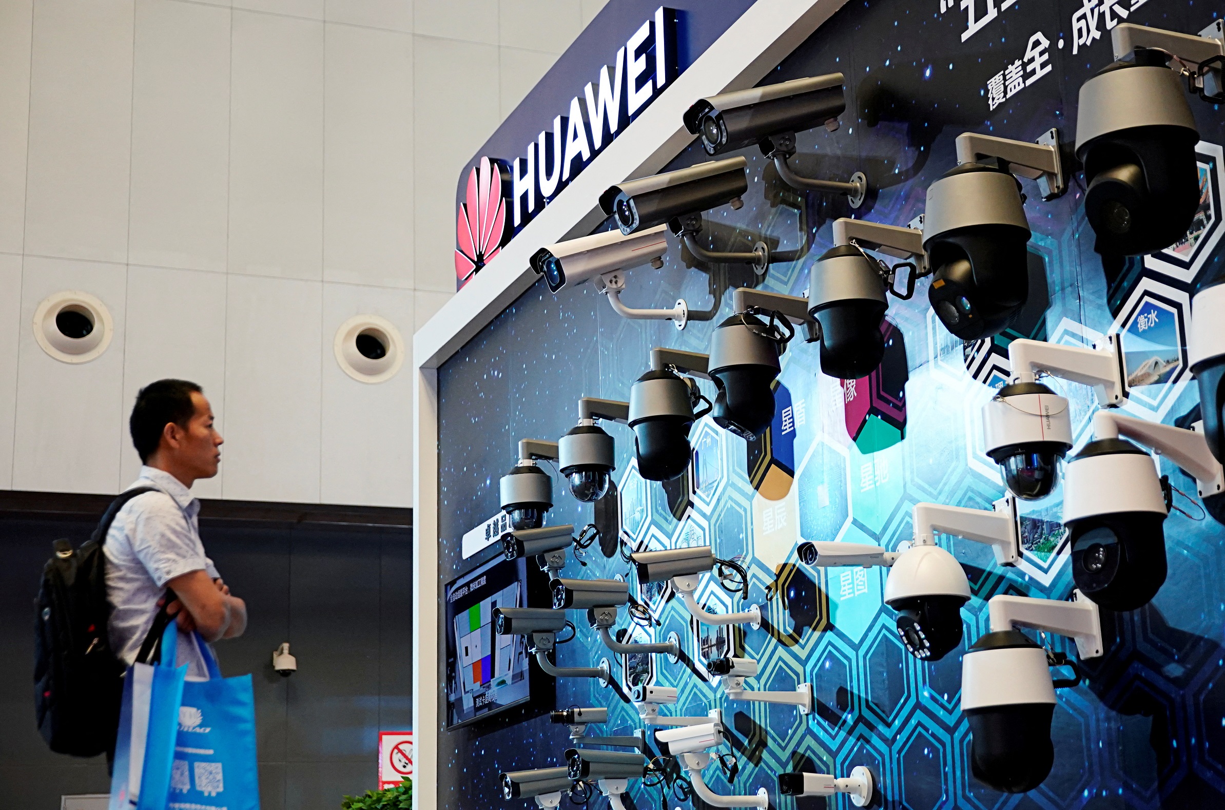 A 2019 photo shows Huawei surveillance cameras displayed at a security exhibition in Shanghai, China.
