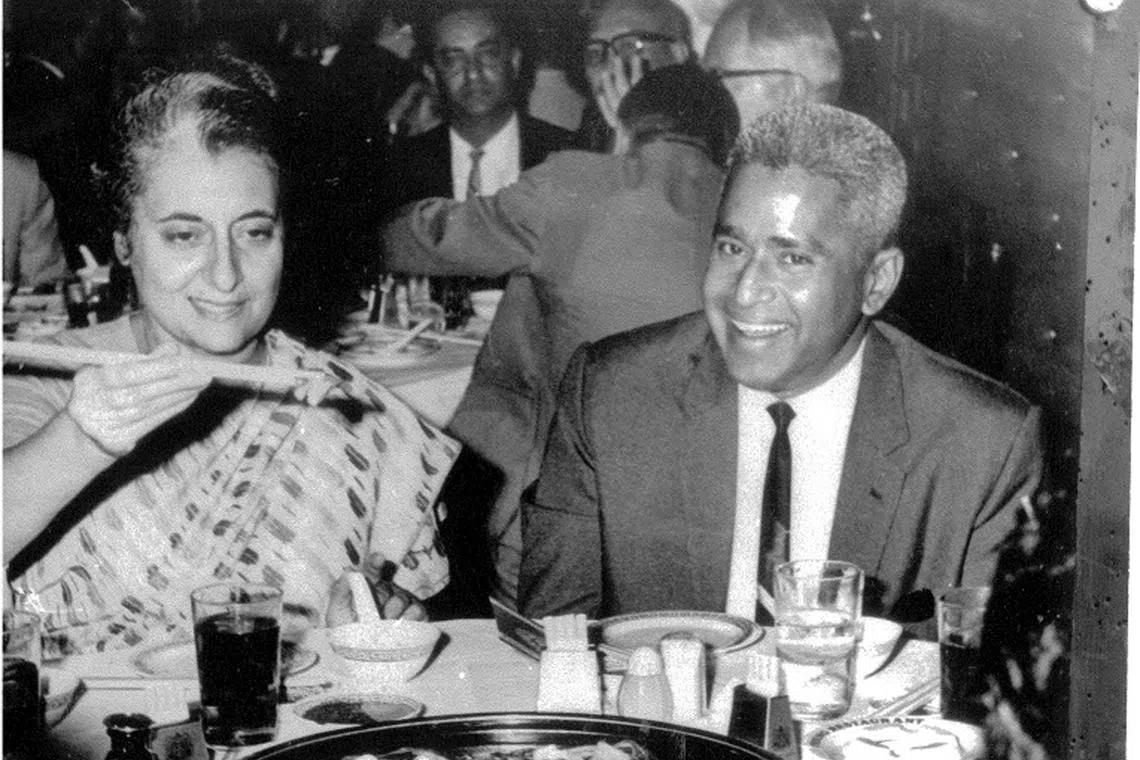 Then Indian Prime Minister Indira Gandhi (left) with Mr G. Ramachandran of the Singapore Indian Chamber of Commerce and Industry during her visit to Singapore in 1966.