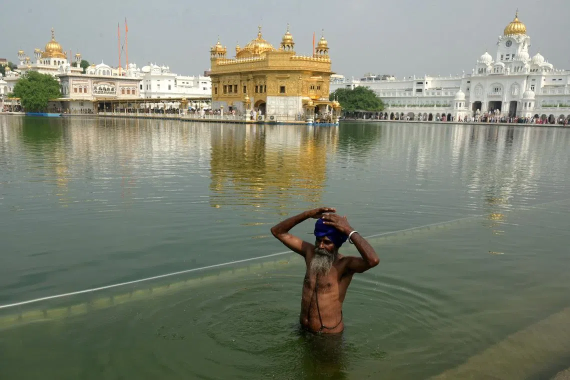 A devotee taking a holy dip in a lake at the Golden Temple in Amritsar on Sept 22, 2023.