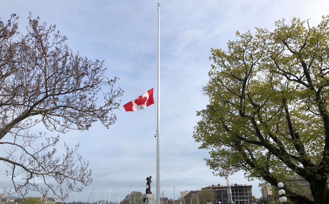 A Canadian flag flown at half-mast at the British Columbia legislature in Victoria in mourning for the 215 children.