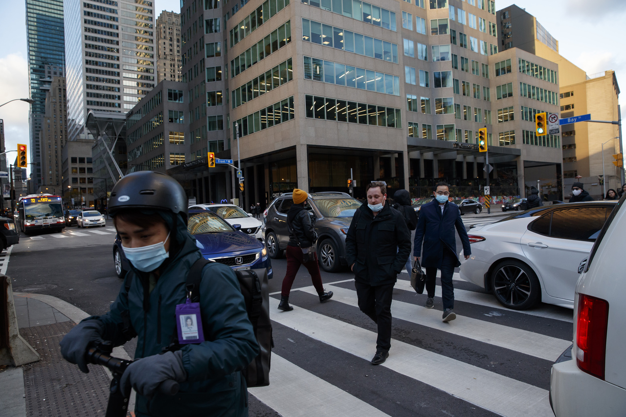 Commuters in the financial district in Ontario, Canada, on Nov 22, 2021.