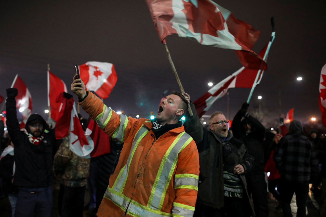 The "Freedom Convoy" protests, started by Canadian truckers opposing a vaccinate-or-quarantine mandate for cross-border drivers, are also occupying areas outside government buildings in the capital city of Ottawa and have blocked two smaller US crossings.