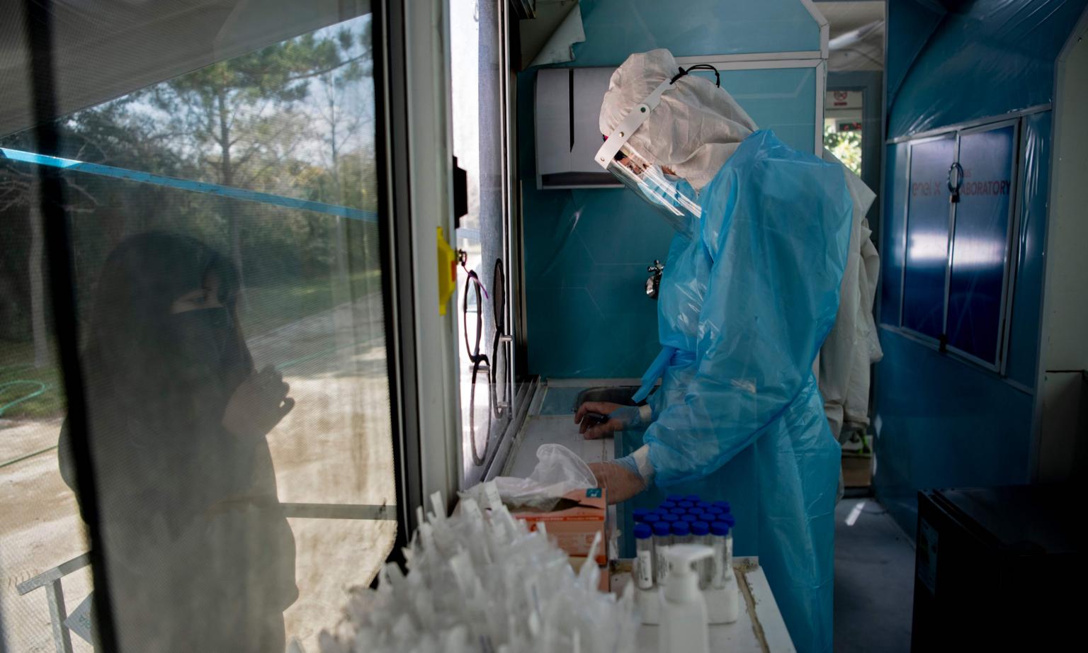 A nurse prepares to carry out a PCR test for Covid-19 at a mobile medical center in Santiago on Aug 25, 2020.