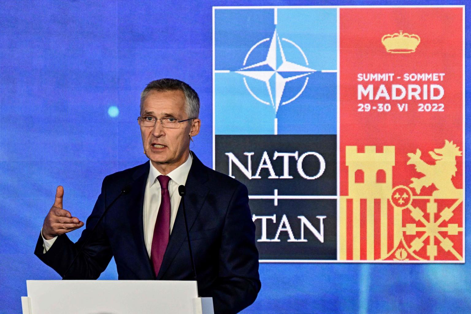 Mr Jens Stoltenberg delivering his opening speech on the first day of the Nato summit, on June 28, 2022.