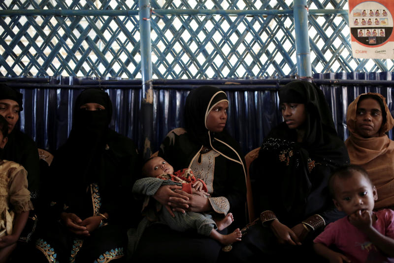 Rohingya refugees wait for their babies to be examined by doctors at the Unicef health centre at the Kutupalong refugee camp near Cox's Bazar, Bangladesh on Dec 12, 2017.