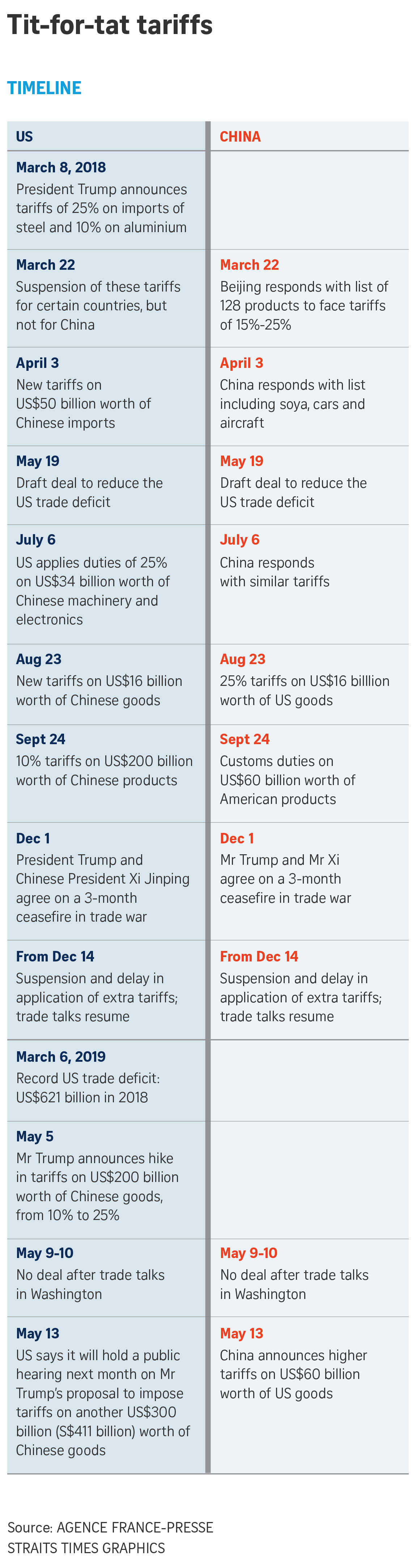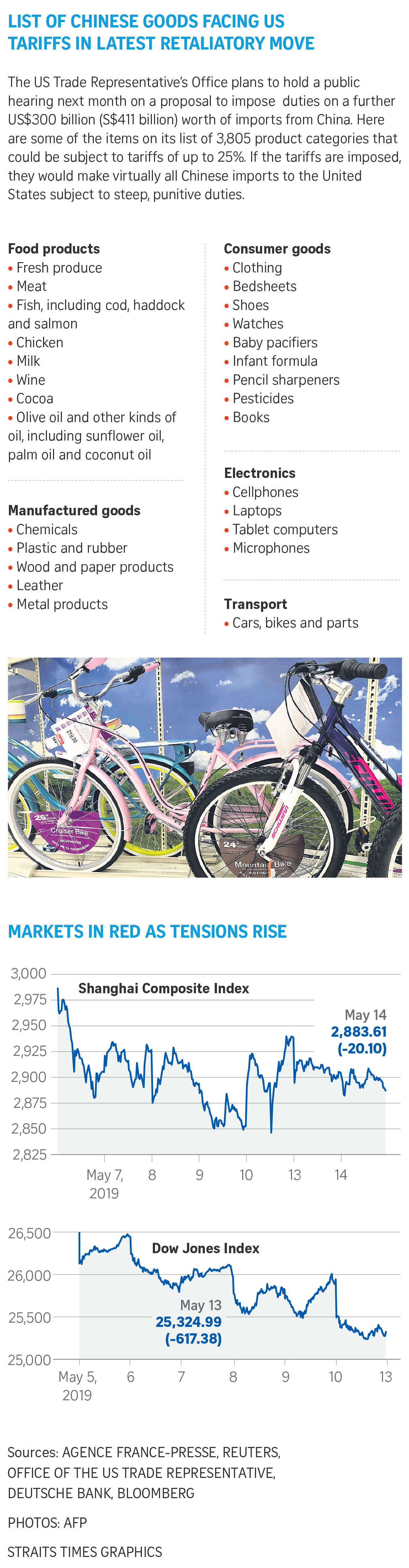 As negotiations toward resolving the US-China trade war stalled last week, Mr Trump escalated pressure by increasing tariffs last Friday to 25 per cent from 10 per cent on a previous US$200 billion list of Chinese imports.