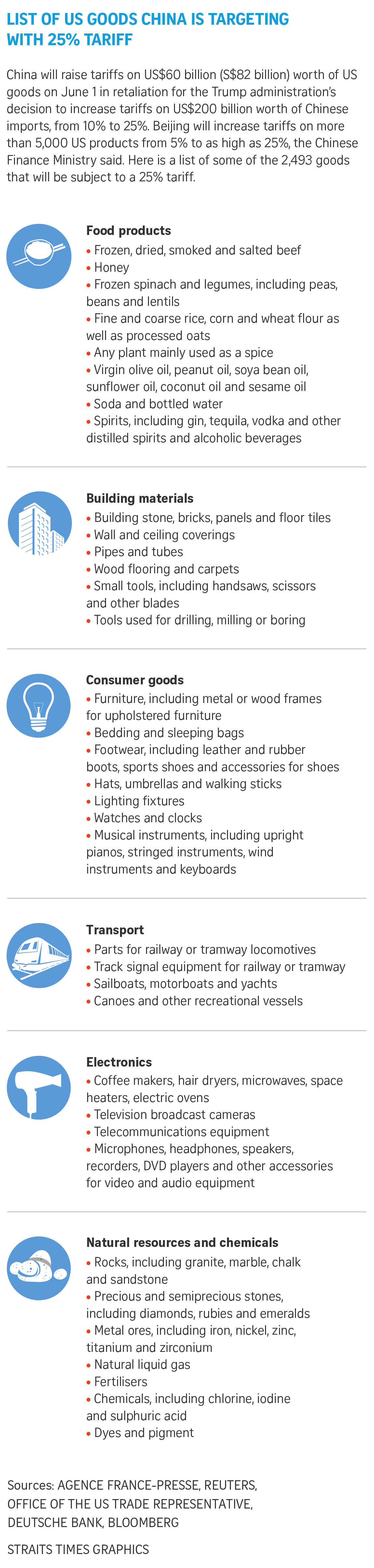 China retaliated on Monday with higher tariffs on a revised list of US$60 billion worth of US products.