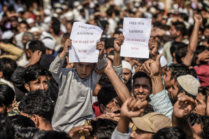 A protest against the ending of Kashmir's limited autonomy after Eid prayers in Srinagar, India, on Aug 12, 2019.