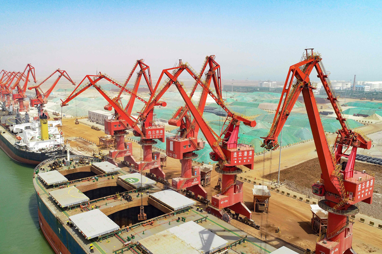 Cargo ships at a port in Lianyungang, China, on April 16, 2018.