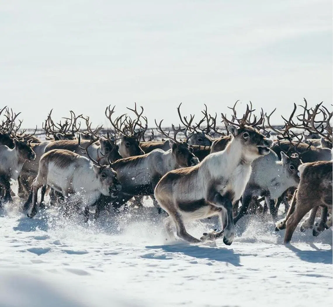 Earlier snow melt and more rain form layers of ice in the snow, and reindeer have a hard time digging for lichen and other plants growing underneath. When the animals walk on thin ice, they are at risk of falling through the ice.