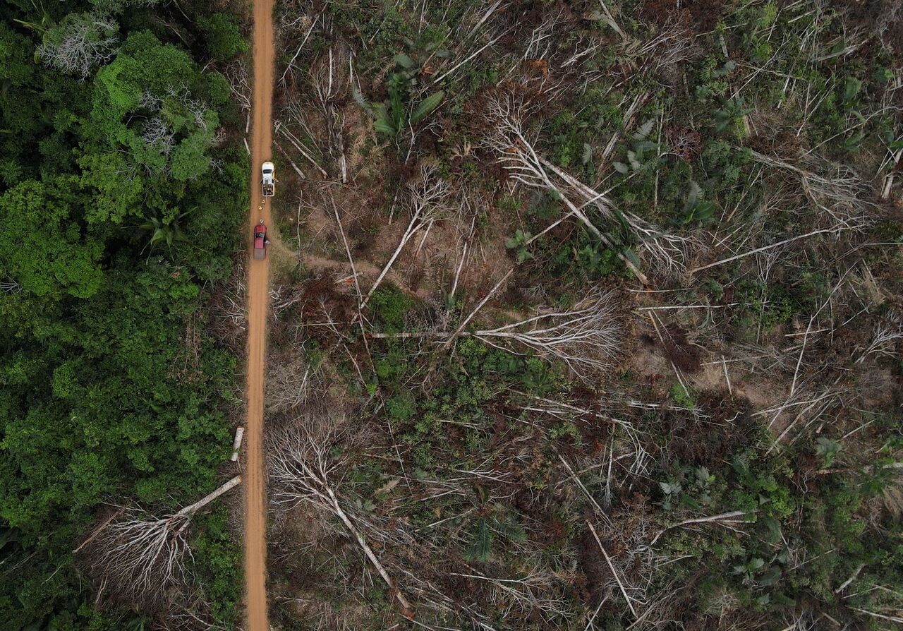 This aerial photo taken on Sept 4, 2021 shows a deforested plot of the Amazon rainforest in Apui, Amazonas state.