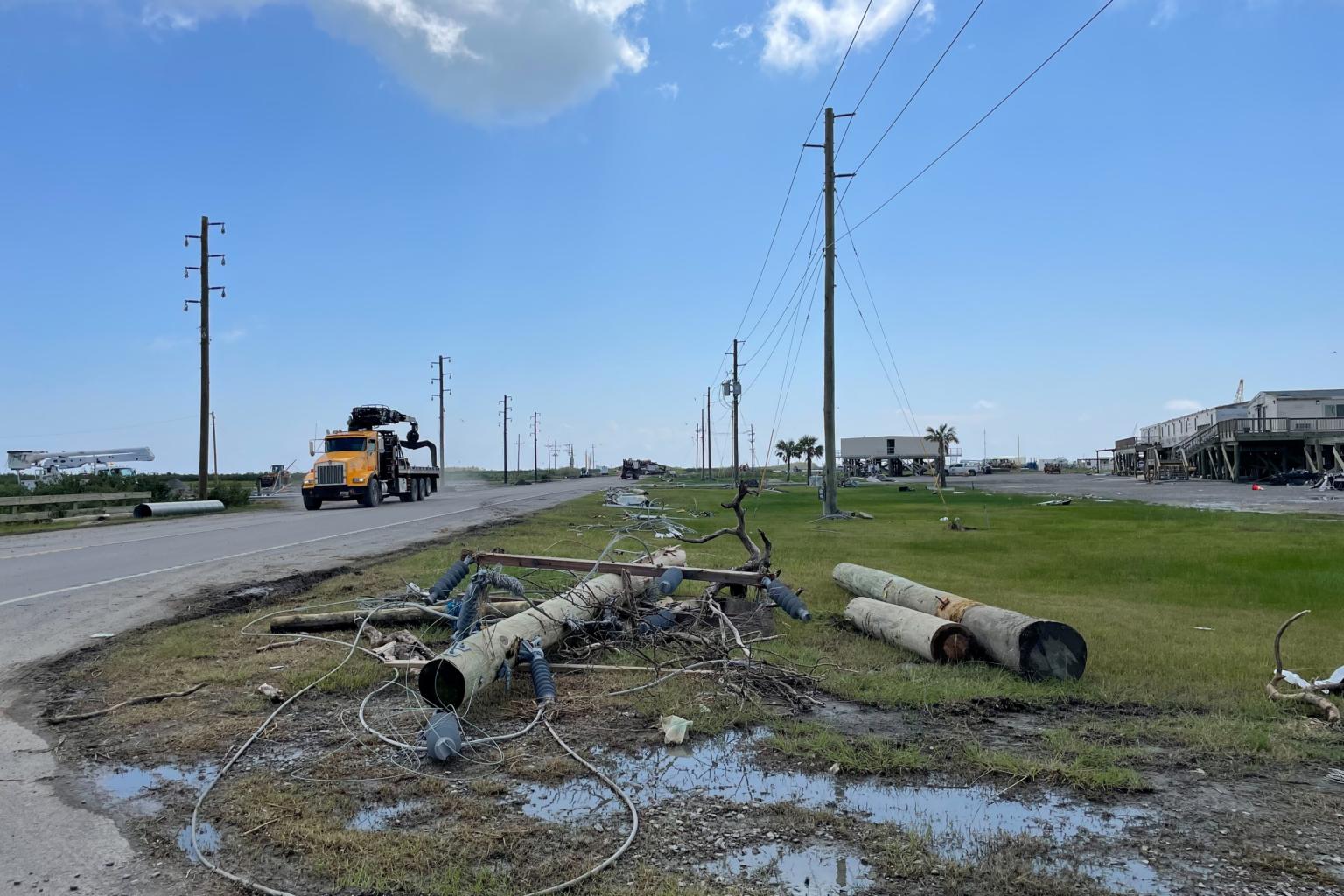Damage is seen around Port Fourchon in Louisiana on Sept 21, 2021.