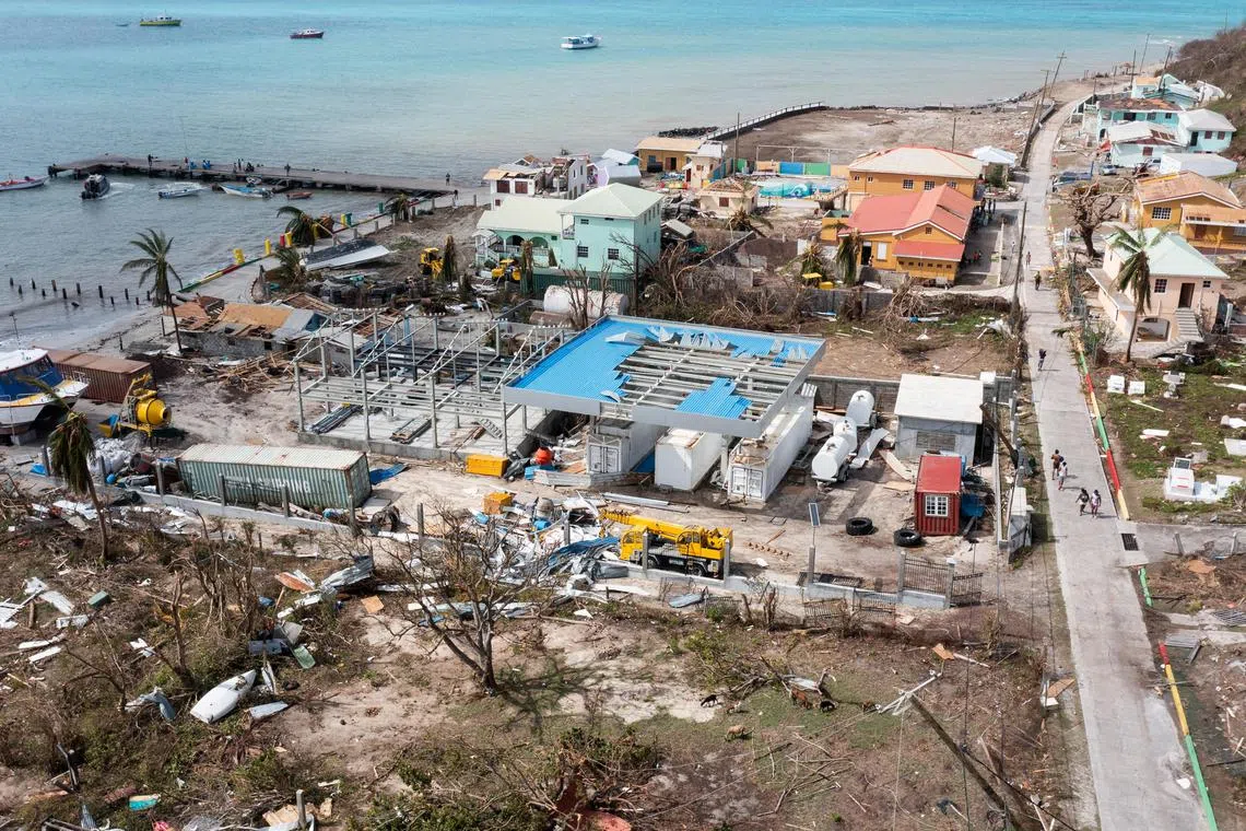 Damaged houses and buildings are seen after Hurricane Beryl passed the island of Petite Martinique island, Grenada, on July 2, 2024.