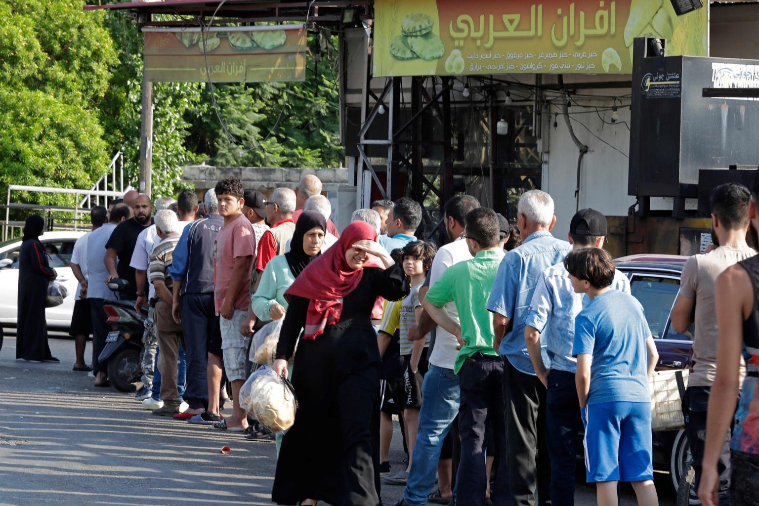 People waiting to buy bread at a bakery in Sidon, Lebanon, on June 22, 2022.