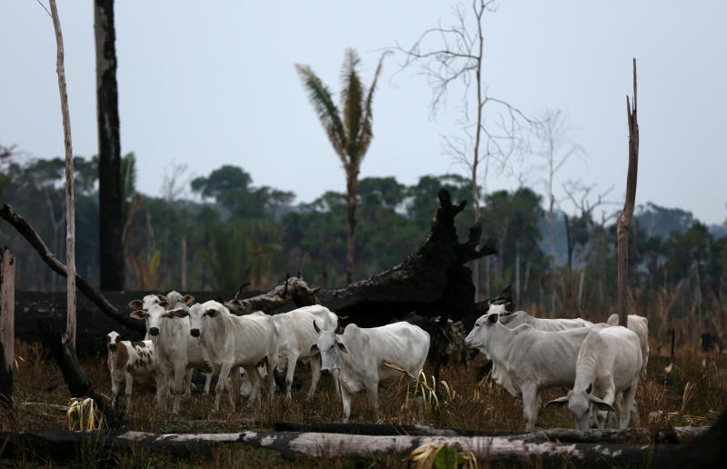 Cattle seen on a tract of Amazon jungle after a fire in Apui, Brazil, on Sept 5, 2019.