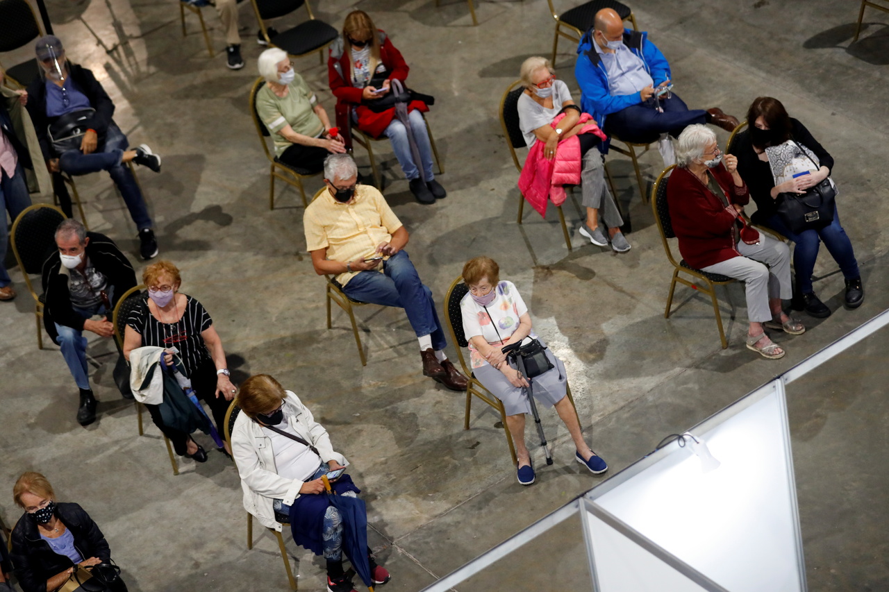 Elders wait to get a dose of the Oxford-AstraZeneca Covid-19 vaccine at a vaccination center in Buenos Aires, Argentina, on Feb 22, 2021.