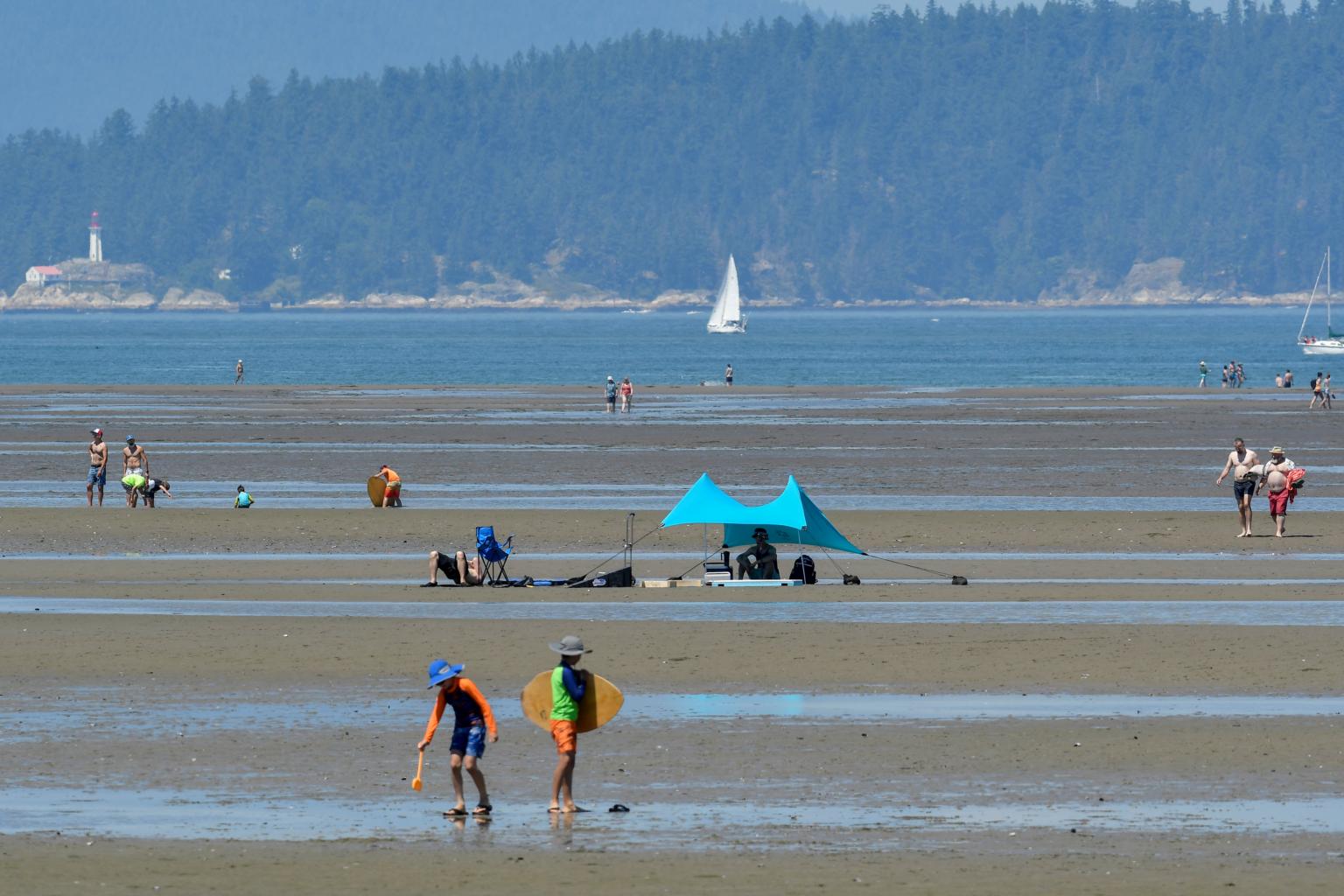 People are seen at a beach during a heat wave in Vancouver on June 27, 2021.
