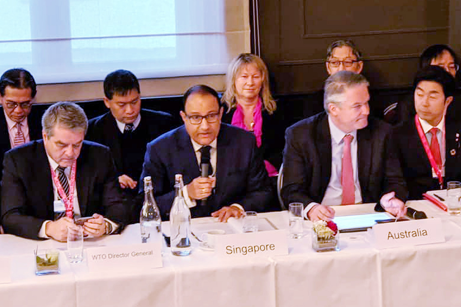 Communications and Information Minister S. Iswaran at a World Trade Organisation-related meeting in Davos, Switzerland, last week. Singapore, together with Australia and Japan, are co-convenors shepherding negotiations on digital trade rules at the WTO.