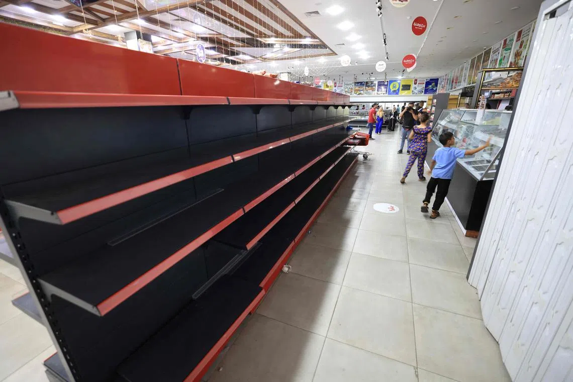 Shelves standing empty at a supermarket in Khan Yunis on Nov 11.