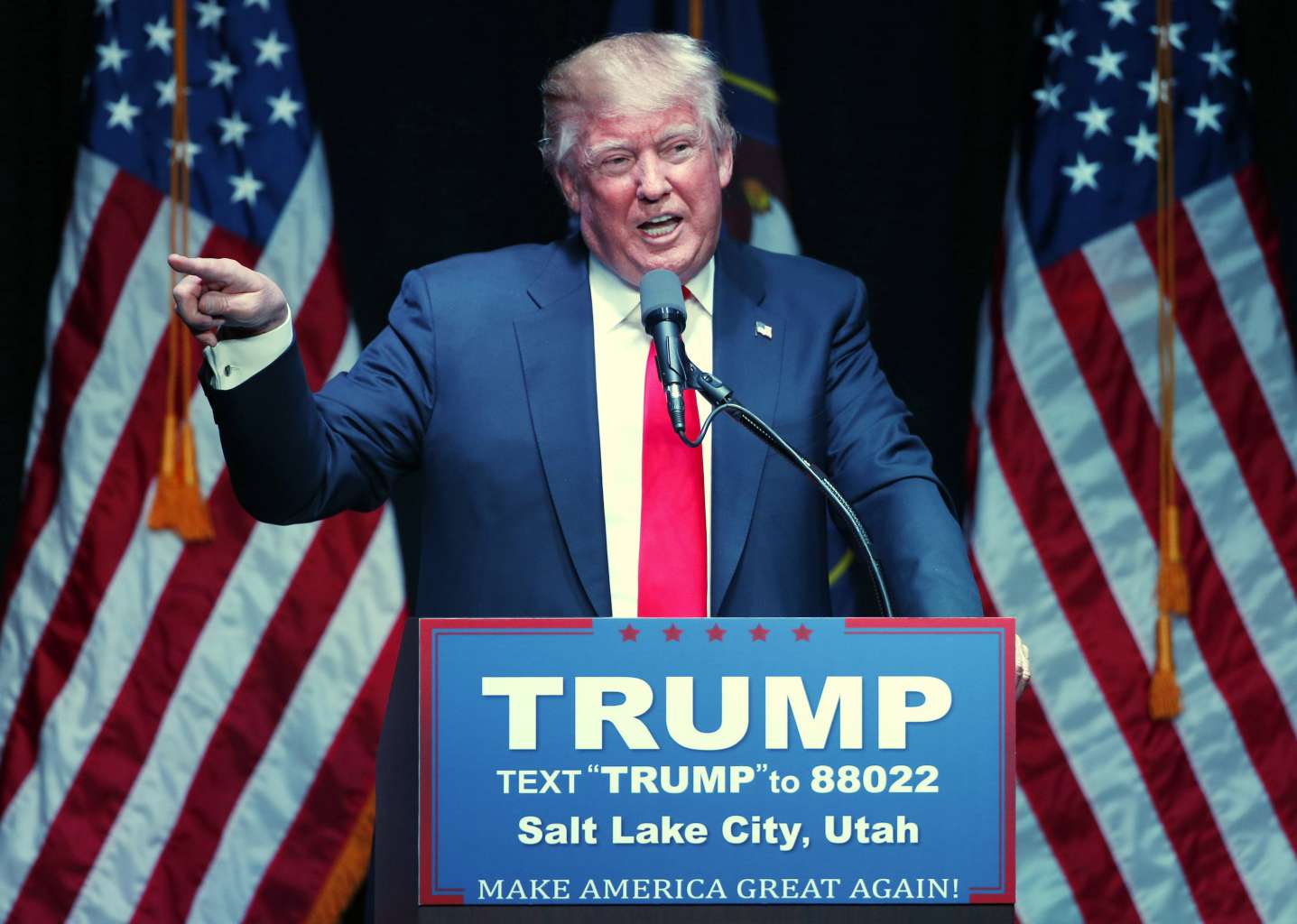 Republican presidential candidate Donald Trump speaks at a campaign rally at the Infinity Event Center on March 18, 2016 in Salt Lake City, Utah.
