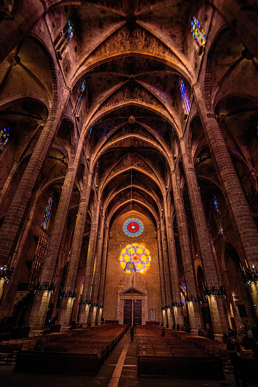 The eastern rose window is the largest of Gothic design in the world. Known as the Gothic eye, it is almost 14m in diameter, with 24 triangles and 1,236 glass pieces.
