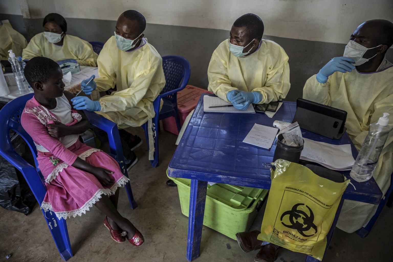 A girl receives an Ebola vaccination in Katwa, Congo, on May 12, 2019.