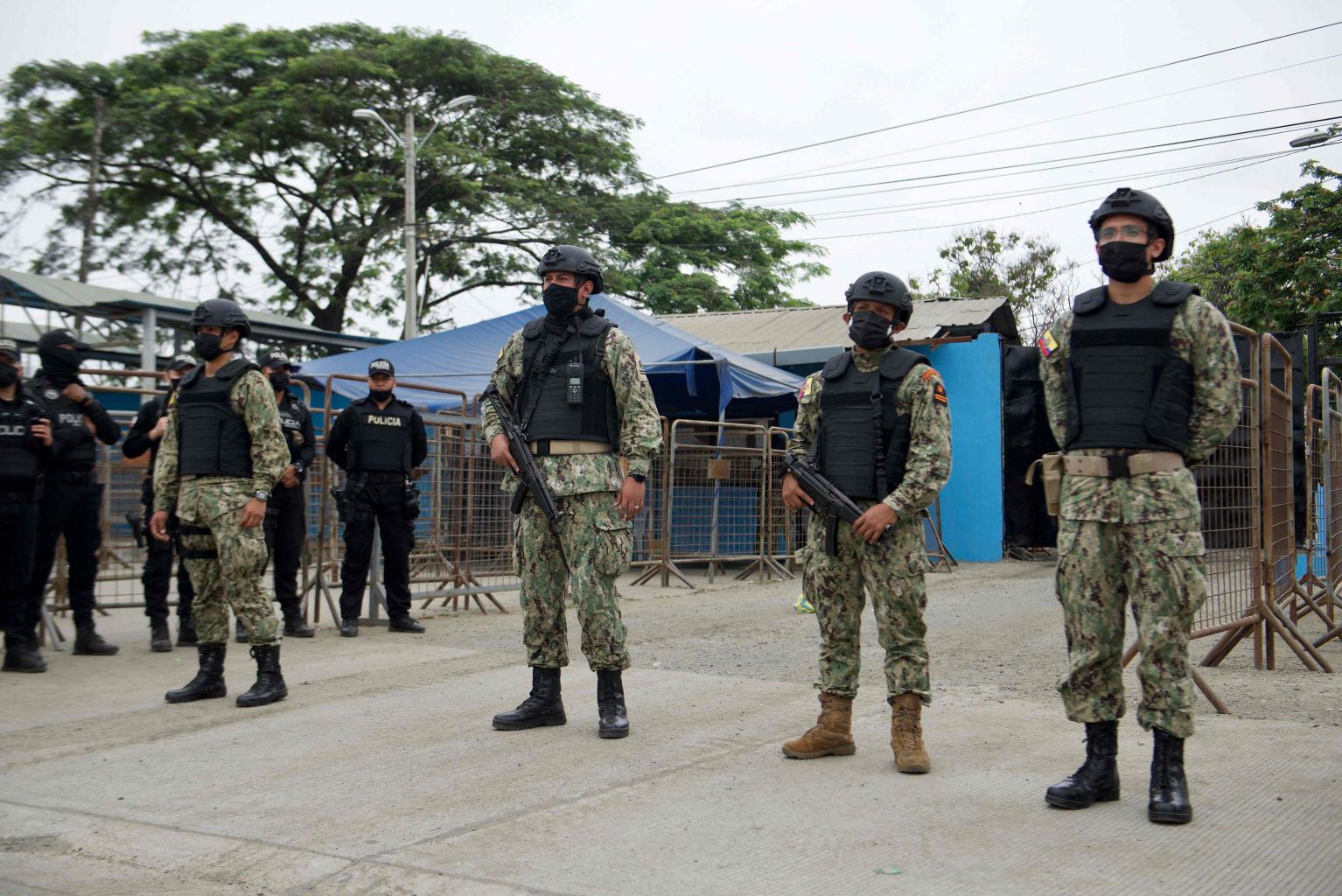 Military police stand guard outside the Guayas 1 prison after violence between inmates that left 58 dead.