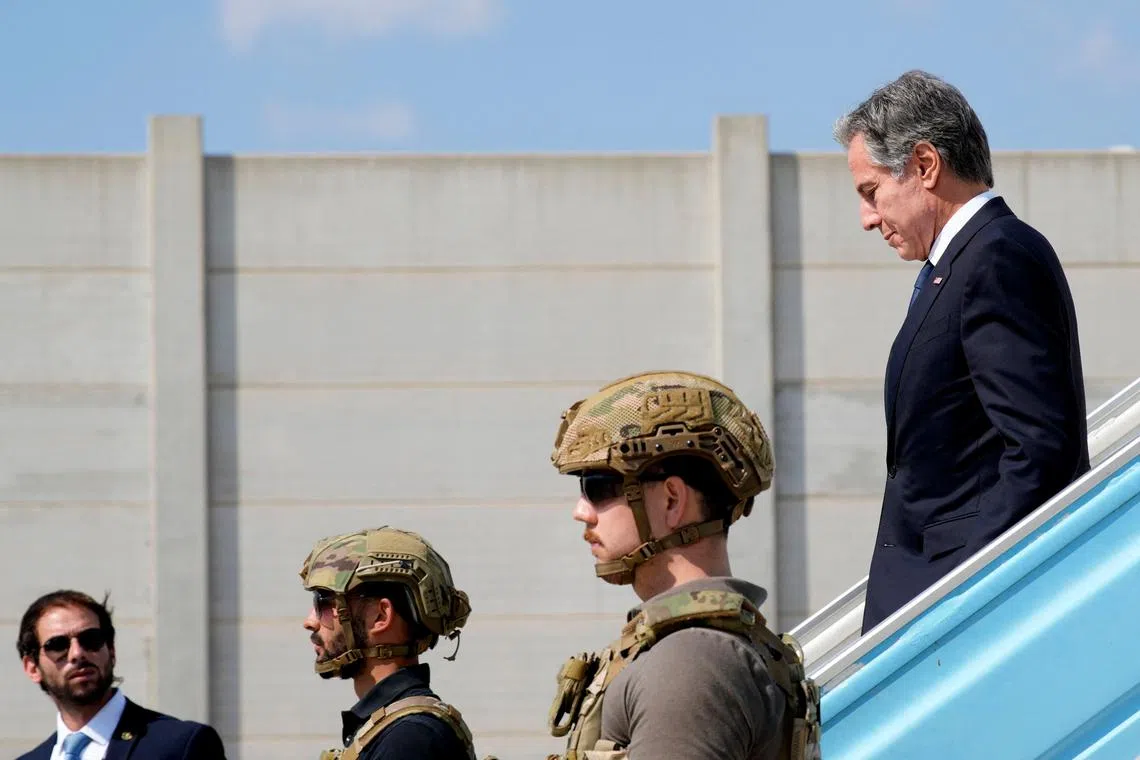 US Secretary of State Antony Blinken arriving in Israel for crisis talks, after a tour of Arab nations, at Ben Gurion Airport near Tel Aviv on Oct 16.