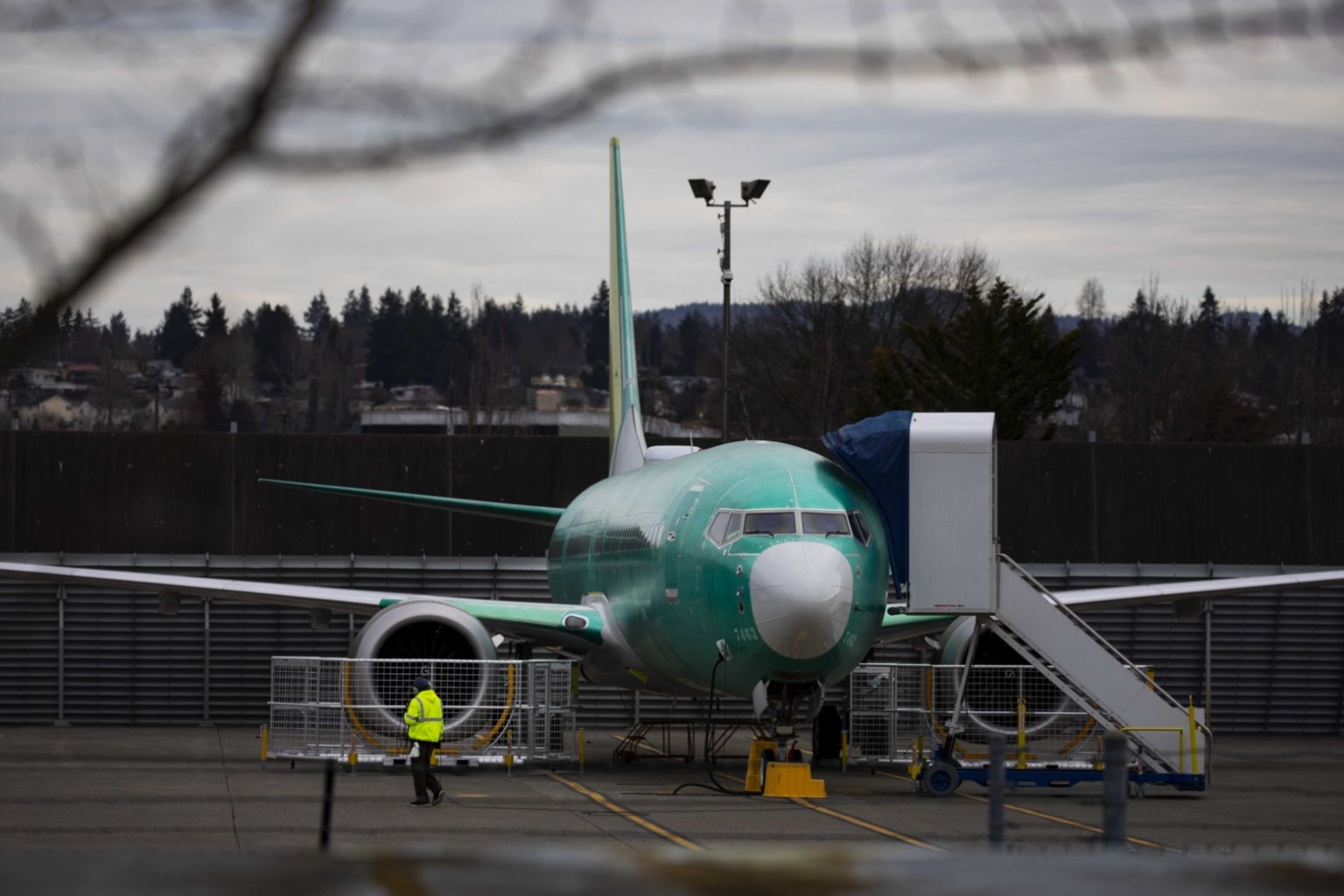 A new, unpainted 737 Max 9 at Boeing's plant in Renton, Washington, on March 17, 2019.