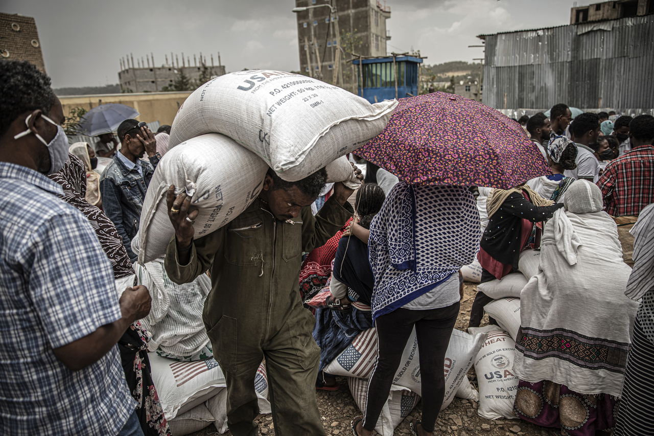 Emergency food distribution in the city of Mekele in Ethiopia's northern Tigray region on June 26, 2021.