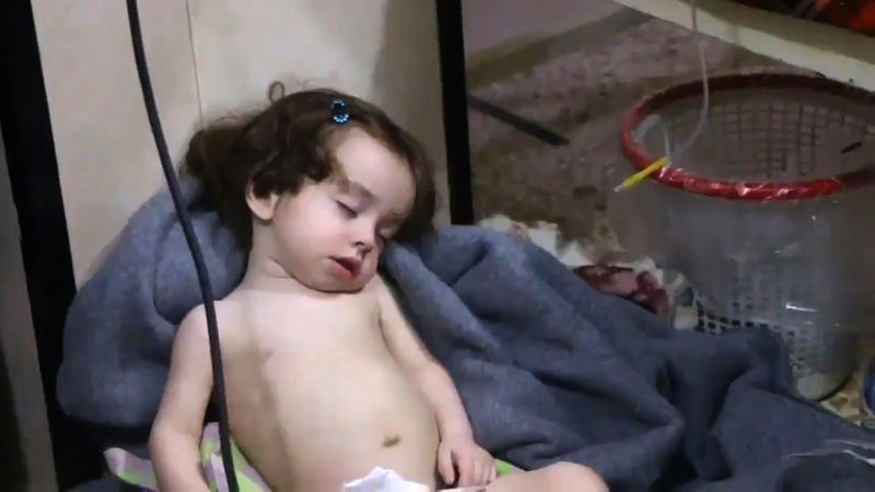 A Syrian child at a hospital following a reported chemical attack on the rebel-held town on April 8, 2018.