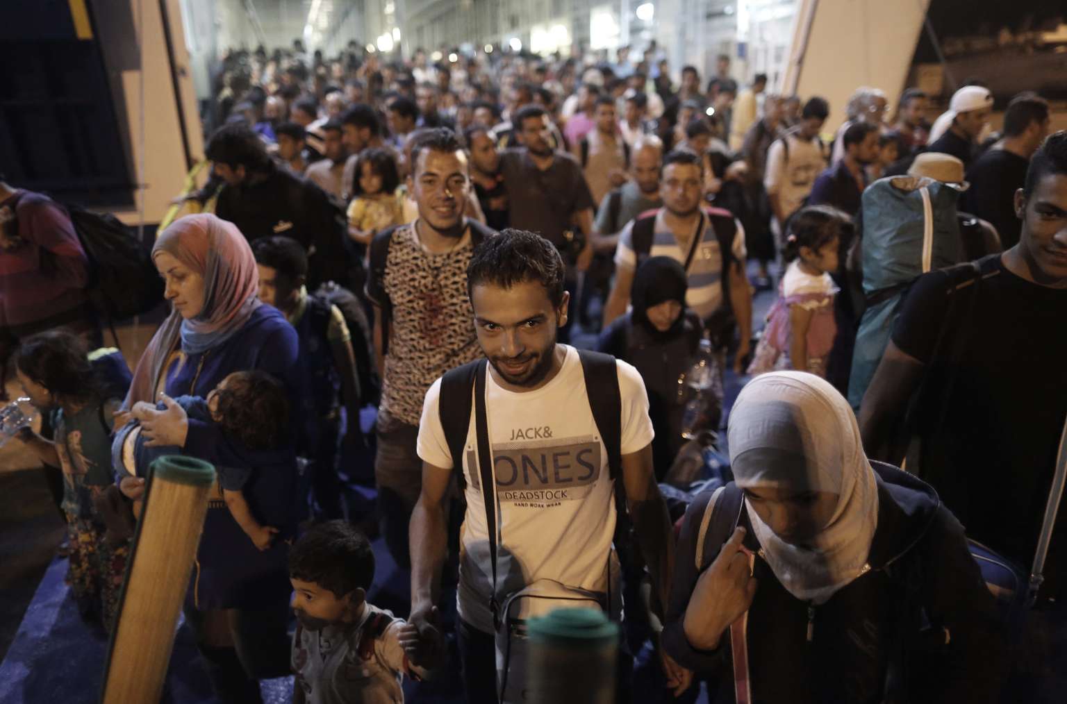 Syrian refugees disembark from a ferry at the port of Piraeus, near Athens, Greece, on Sept 1,2015.