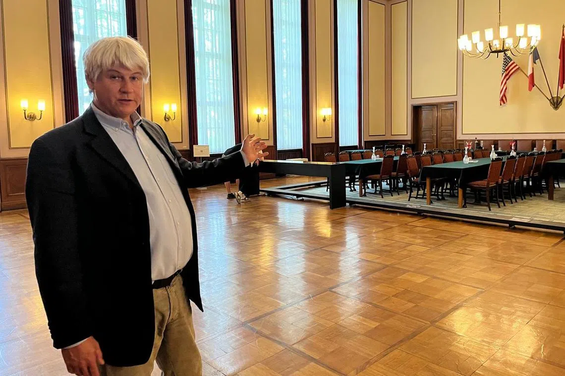Dr Jorg Morre in the room where Germany’s leaders signed on May 8, 1945, the documents that formalised the unconditional surrender of the German armed forces to the Allied forces.