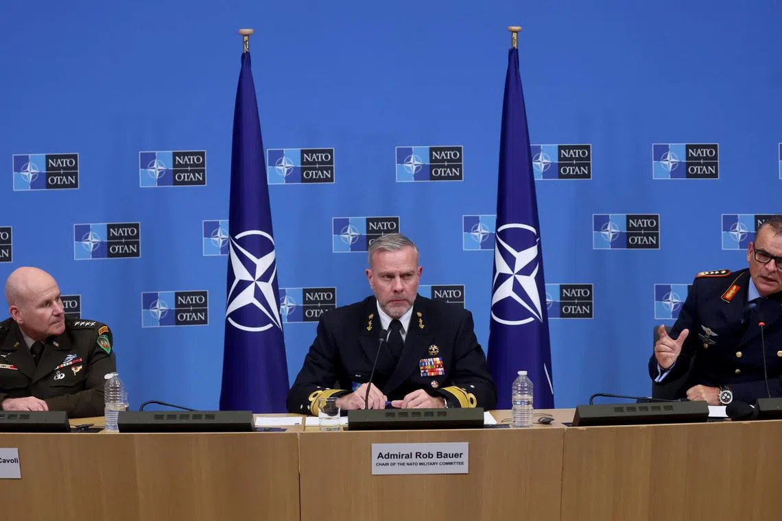 (From left) Nato's supreme allied commander in Europe, General Christopher Cavoli; Nato's military committee chairman Rob Bauer; and Nato's deputy supreme allied commander (transformation) Chris Badia at a press conference in Brussels on Jan 18.