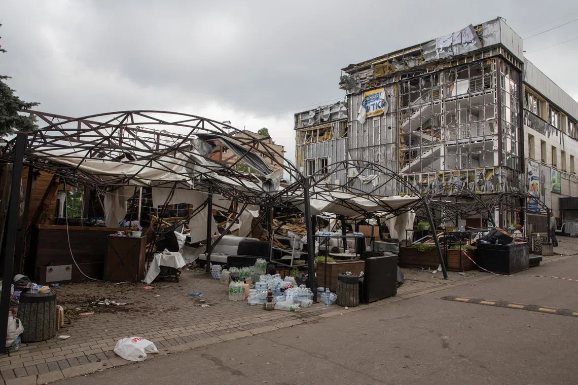 KRAMATORSK, Ukraine - Outside an apartment block scarred by the missile strike that struck a bustling restaurant in Ukraine’s city of Kramatorsk