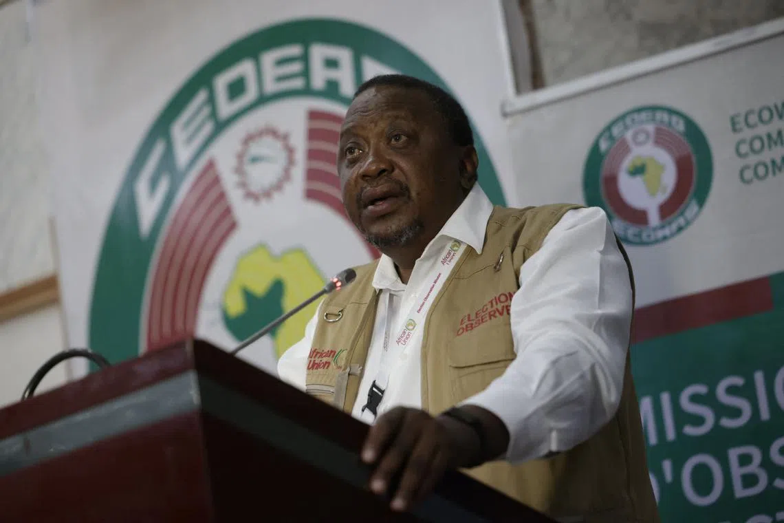 Former Kenyan president Uhuru Kenyatta speaking at a press conference in Abuja, Nigeria, on Feb 27, 2023.