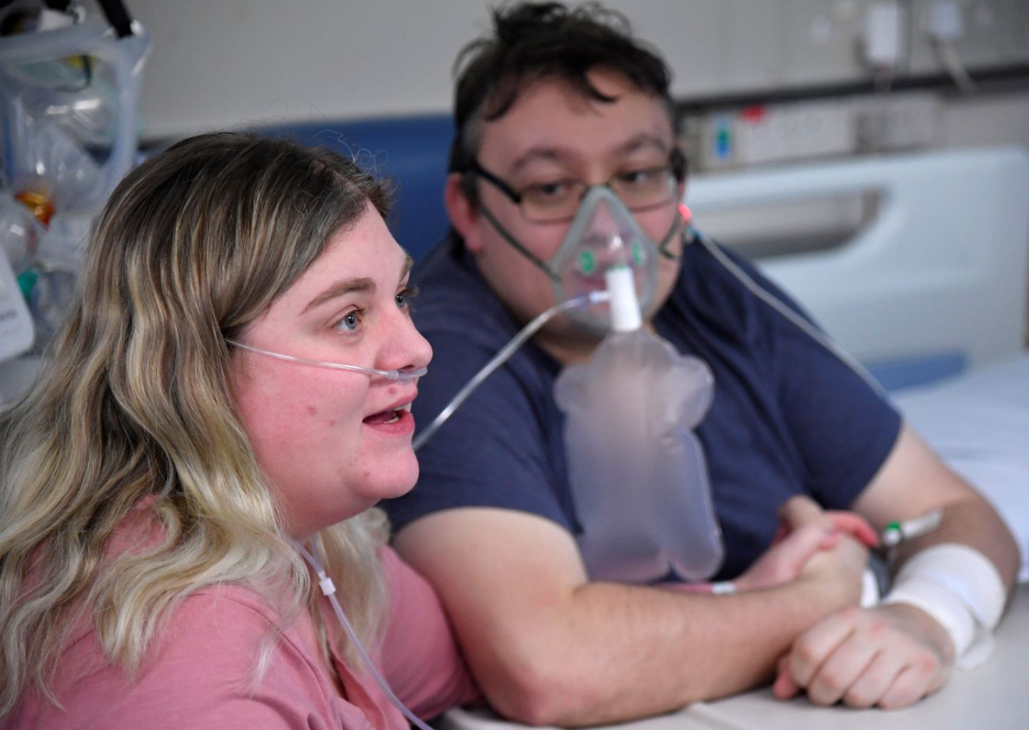 When Ms Kerr, 31, and Mr O'Brien, 36, arrived at the hospital in southern England, both needed a CPAP machine to breathe.