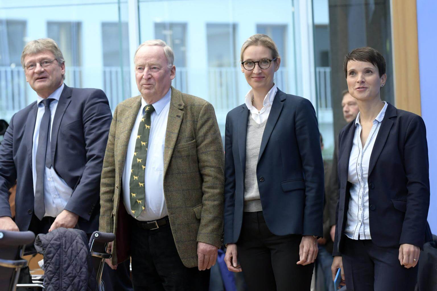 Alternative for Germany's (from left) Joerg Meuthen, Alexander Gauland, Alice Weidel and Frauke Petry prior to news conference in Berlin on Sept 25, 2017.