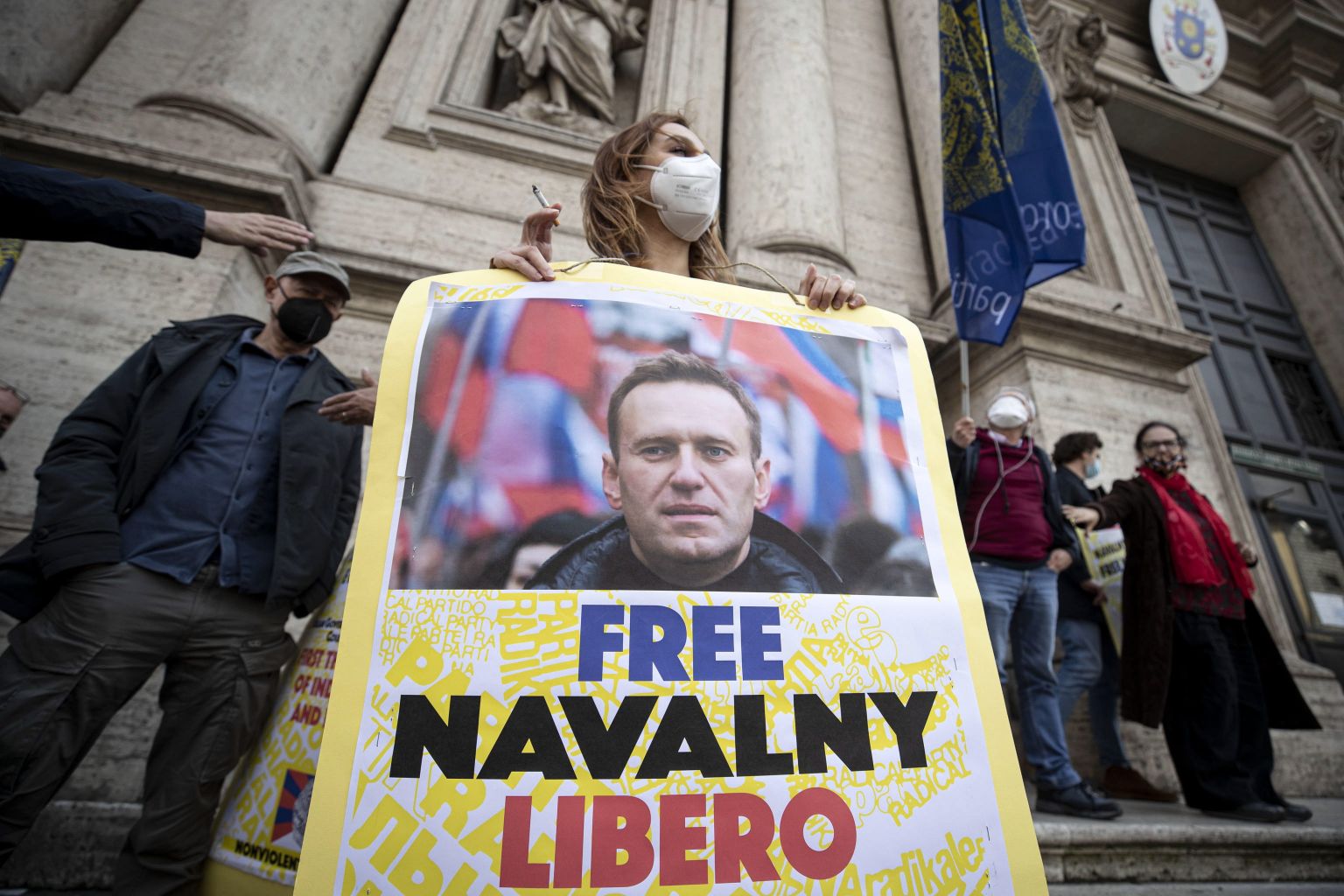People attend a rally seeking the release of Alexei Navalny in Rome, Italy, April 21, 2021.
