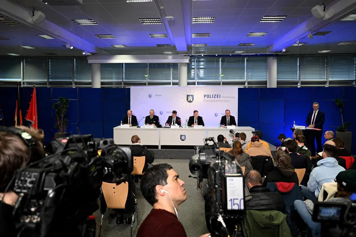 Officials, including police chief Ralf Meyer (centre), provide details about the shooting to the media, at a press conference in Hamburg.