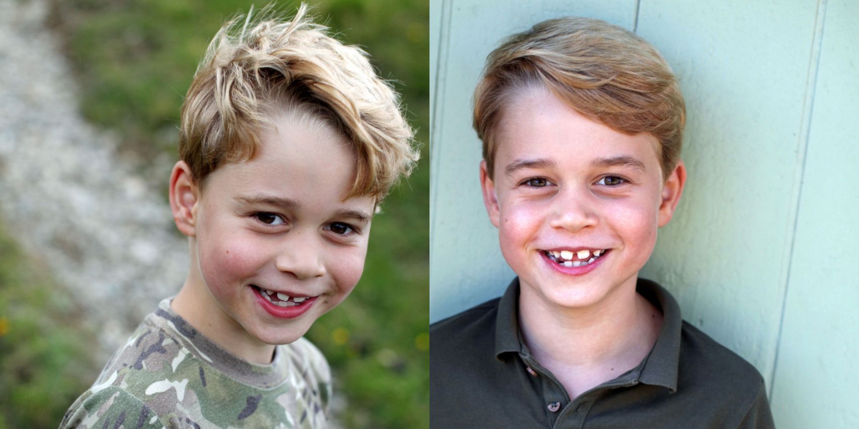 One showed George dressed in a dark green polo shirt, his hair neatly brushed, while in the other he wore a T-shirt with a camouflage pattern and his hair was tousled. He appeared to have lost one or more of his milk teeth.