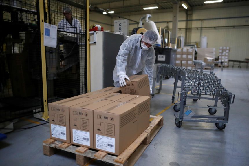 The factory, in Angers, typically makes around 170 million masks a year, but in the last week, orders arrived for a staggering half-billion, flooding the sales department's inboxes at the rate of one every two minutes. Kolmi Hopen is racing to hire more workers to keep the machines running 24 hours a day, seven days a week.