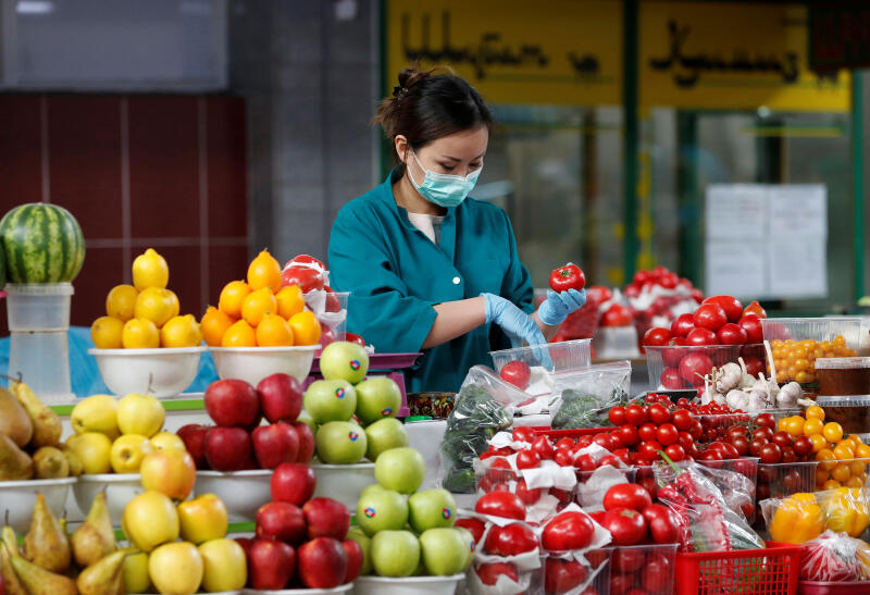 A produce vendor in Kazakhstan, which has just banned exports of carrots, sugar and potatoes.