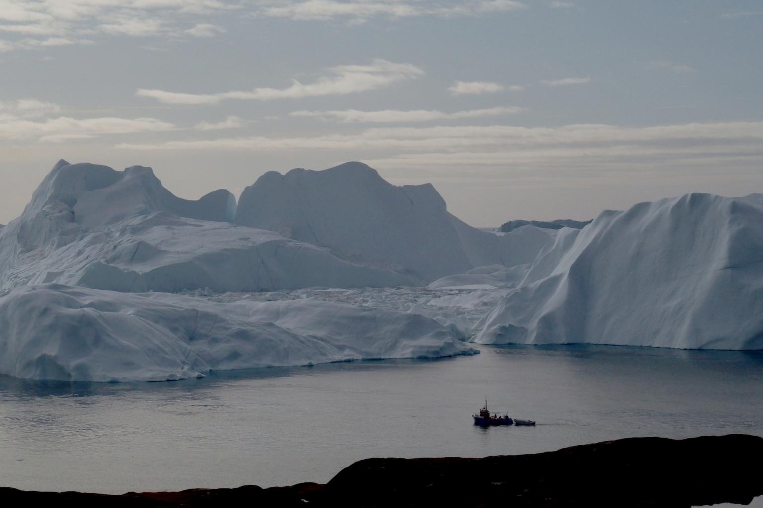 Greenland is largely an ice sheet with a rocky coastline of 44,000km.