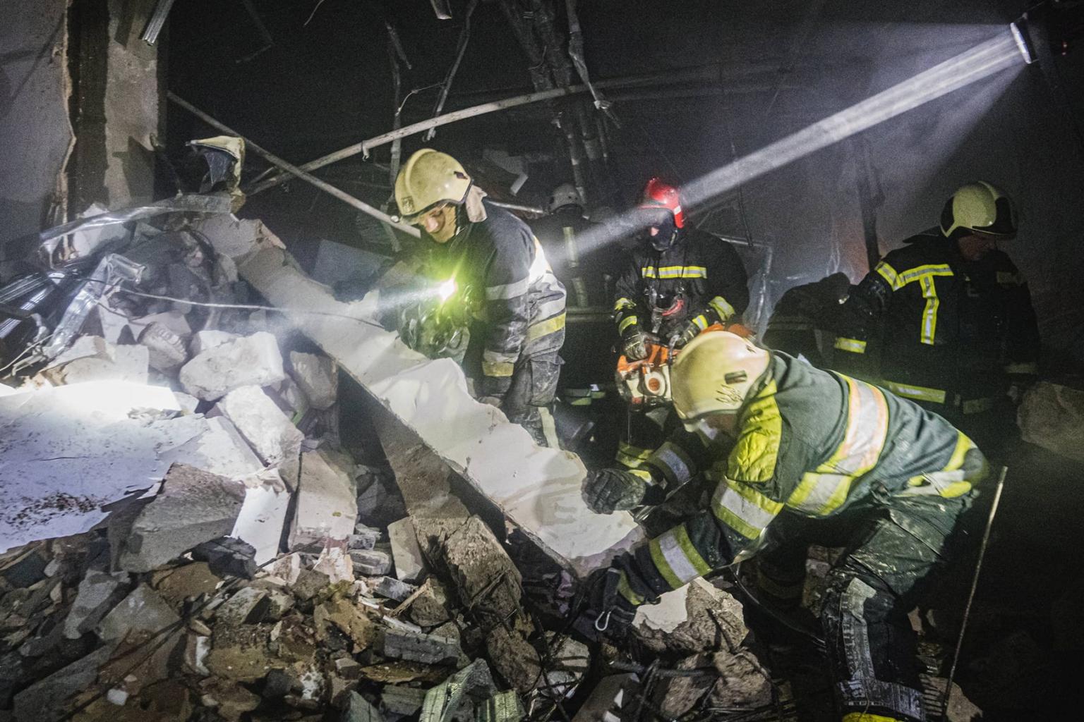 KYIV (AFP) - At least six people were killed in the overnight bombing of a shopping centre in the Ukrainian capital Kyiv, an AFP journalist said on Monday (March 21), with rescuers combing the wreckage for other victims.