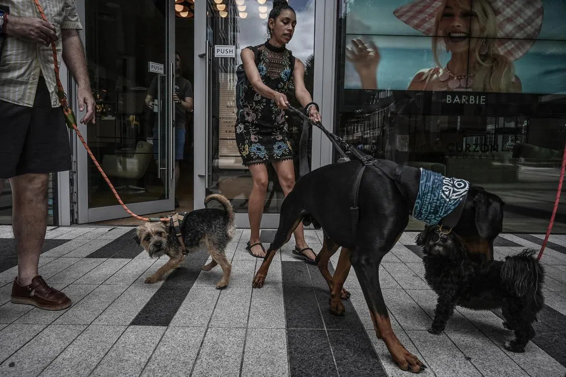 Ms Rebecca Minty and her dog, Lottie, attend a screening of the movie Strays at the Curzon Aldgate cinema in London on Aug 19.