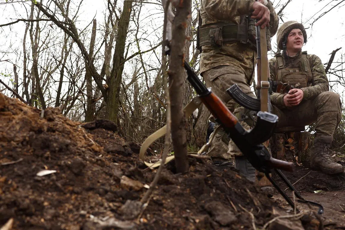 Ukrainian servicemen from the 28th mechanised brigade remain in their trenches, amid incoming front-line fire in the region of Bakhmut.